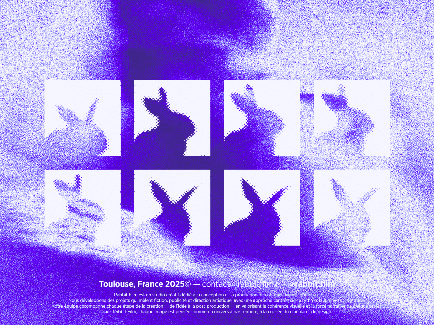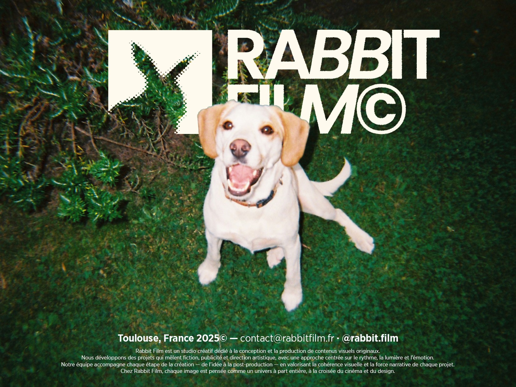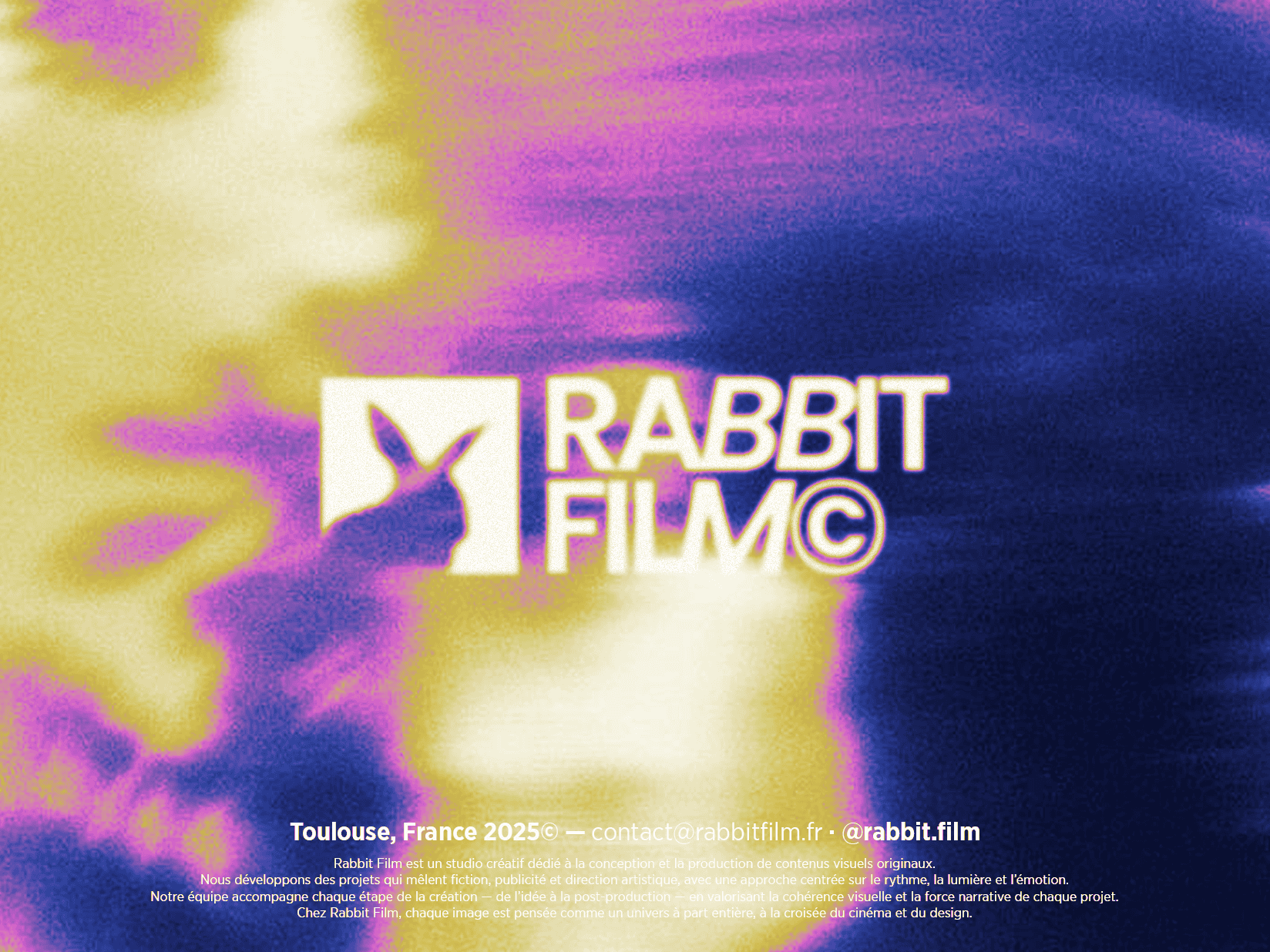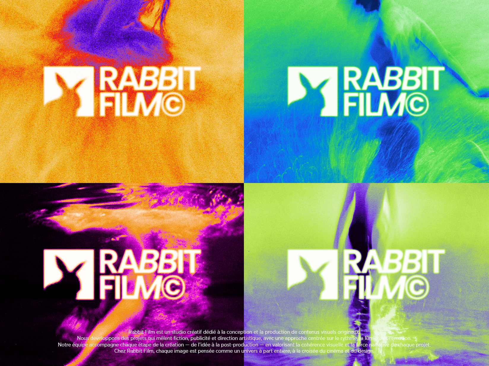 Le logo de Rabbit Film traduit la dualité entre créativité instinctive et rigueur cinématographique. Le lapin, symbole d’agilité et de curiosité, est stylisé dans une forme minimaliste pour évoquer la vitesse et le mouvement — deux notions centrales dans l’univers audiovisuel. La typographie, sobre et précise, vient équilibrer cette énergie en affirmant une image professionnelle et contemporaine. L’ensemble forme une identité à la fois cinétique et élégante, capable de s’adapter aussi bien aux génériques qu’aux supports imprimés, tout en affirmant la personnalité singulière du studio.